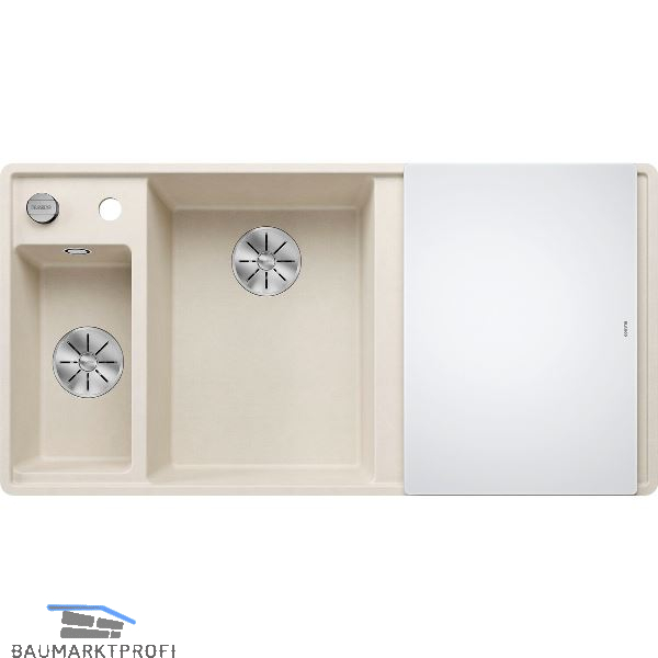 BLANCO flächenbdg. Spüle Axia III 6 S-F inklusive Glasbrett Softweiß TT rechts