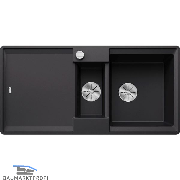 Marke: Blanco Type: Adira 6 S-F Lieferanten-Nr.: 527609 Ausführung: Becken mit Restebecken und Tropftasse Material: Granit Farbe: Schwarz Einbauvariante: flächenbündig Unterbau ab (mm): 600 Außenmaß (mm): 990 x 490 Beckengröße (mm): 400 x 360 x 200 und 310 x 152 x 135