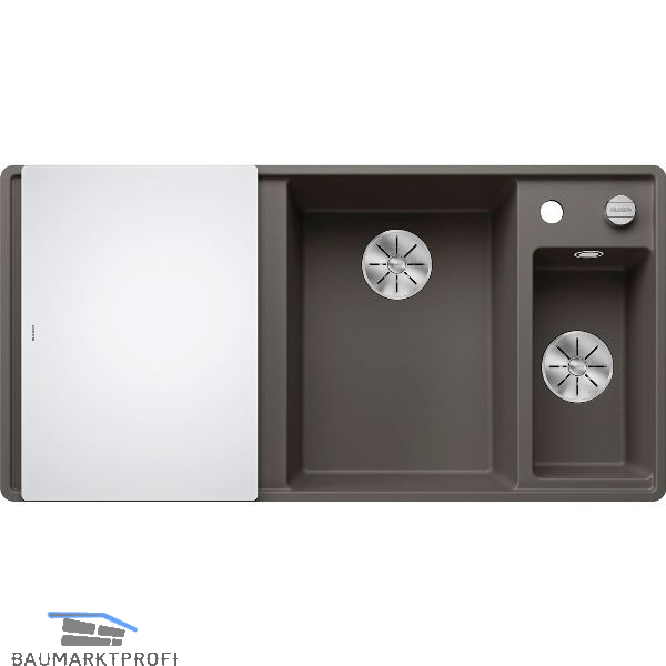 inkl. InFino® Drehknopf-Siebkorbüberlaufventil 3 1/2'', 1 Bohrloch durchgeschlagen, inkl. gelochte Edelstahlschale, inkl. Schneidbrett aus Sicherheitsglas