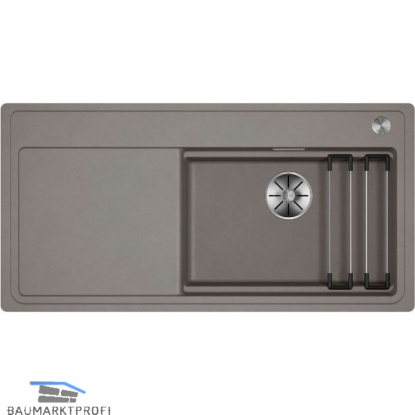 Großzügiges, abgestuftes Spülbecken mit zusätzlicher Funktionalität und geräumiger Abtropffläche.