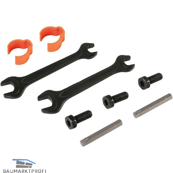 Lieferumfang:2 Stk. Gabelschlüssel SW10 / SW13 für Bohrerwechsel3 Stk. Torx-Schrauben2 Stk. Torx- Bit