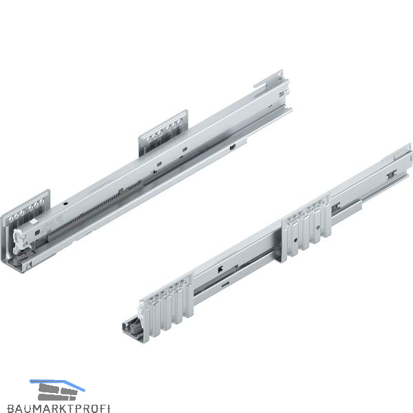 BLUMOTION B - BLUMOTION oder TIP-ON BLUMOTION in einer Führungsschiene integriert. Durch das Aufstecken der TIP-ON BLUMOTION Einheit passt sich der Dämpfweg automatisch an.