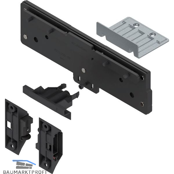 Lieferumfang:1 Stk. Laufträgerverbindung1 Stk. Abdeckung für Laufträgerverbindung1 Stk. Abstützwinkel für Tiefeneinstellung2 Stk. Türabstützung zueinander
