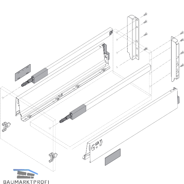 Die Frontbefestigungen und das passende Set TIP-ON BLUMOTION-Einheit mit Mitnehmer ist extra zu bestellen.