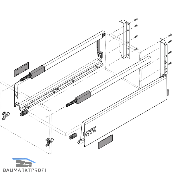 Die Frontbefestigungen und das passende Set TIP-ON BLUMOTION-Einheit mit Mitnehmer ist extra zu bestellen.