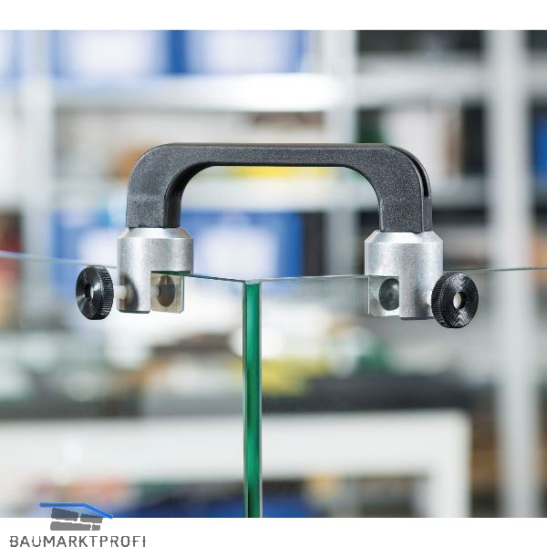 Zwei 360° drehbare, gabelförmige Führungsstücke mit Verbindungsprofil und Kunststoffdruckschrauben zum Feststellen. Besonders geeignet für den Spezialaquarienbau. Für größere Glasdicken.
