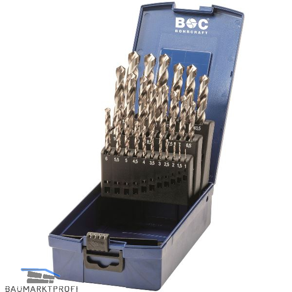 Inhalt: Bohrer ø 1.0, 1.5, 2, 2.5, 3, 3.5, 4, 4.5, 5, 5.5, 6, 6.5, 7, 7.5, 8, 8.5, 9, 9.5, 10, 10.5, 11, 11.5, 12, 12.5, 13 mm