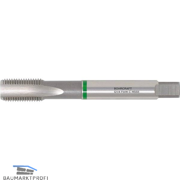 Marke: Bohrcraft Form: C für Durchgangs- und Sacklöcher Gewindegröße: G 7/8" Gänge per Zoll: 14 Gewinde ø (mm): 30,2 Kernloch ø (mm): 28,25 Gesamtlänge (mm): 160 Gewindelänge (mm): 30 Schaft ø (mm): 22 Aufnahme (mm): Überlaufschaft Vierkant (mm): 18 DIN: 5156 Material: HSS-E Type: 4247 Gewindekurzzeichen: G DIN 259