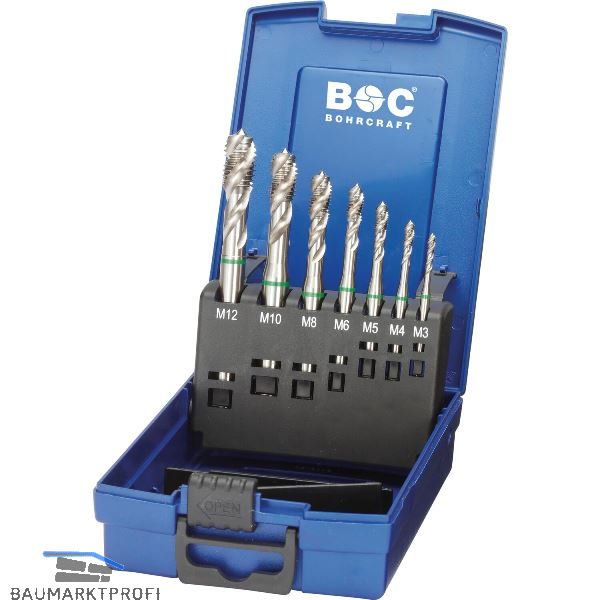 Lieferung inkl. Maschinengewindebohrer DIN 371 M3 / M4 / M5 / M6 / M8 / M10, DIN 376 M12, in Kunststoffkassette.