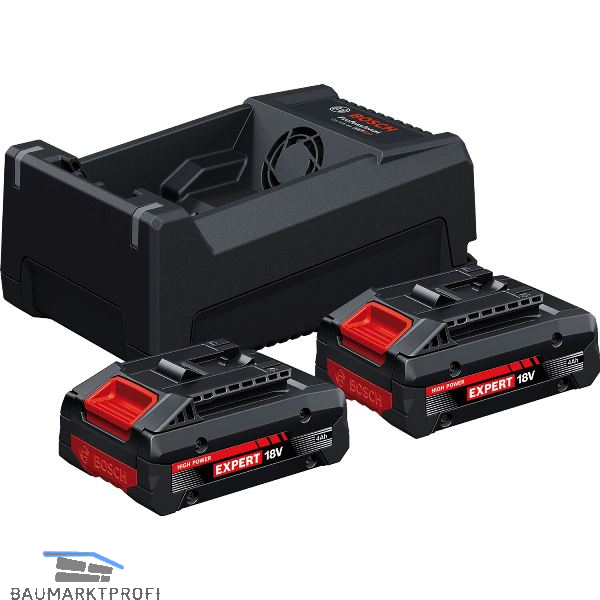 Lieferung inkl. 2 x EXBA18V-40, Schnellladegerät GAL 12V/18V-30, im Karton.
