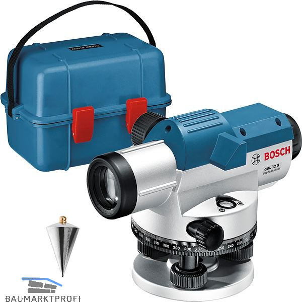 Lieferung inkl. Linsenschutz, Senklot, Sechskantschlüssel, Einstelldorn, im Transportkoffer.