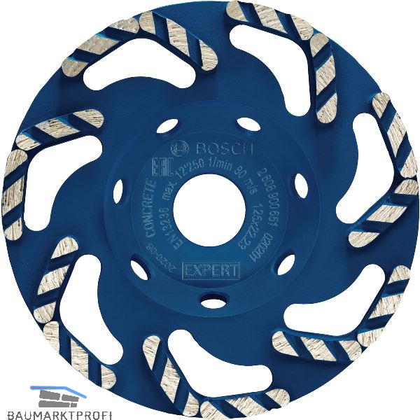 Hochgeschwindigkeitsschleife für die Bearbeitung von Beton. Ausgestattet mit der Bosch Diamond Technology. Effizienter Staubauswurf durch große Staubschlitze.