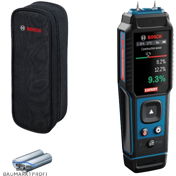 Ein robustes, schlagfestes Feuchtemessgerät mit gummiertem Gehäuse und IP65-Schutz. Es misst Feuchtigkeit in 37 Holz- und 10 Baustoffarten sowie Temperatur und Luftfeuchtigkeit. Per Tastendruck wechseln Sie zwischen nicht-invasivem Pad- und invasivem Stiftsensor. Der Pad-Sensor ermöglicht schnelles Scannen größerer Bereiche. Ideal für Profis wie Schreiner, Trockenbauer oder Sanitärinstallateure zur Vermeidung von Schäden und Schimmel.