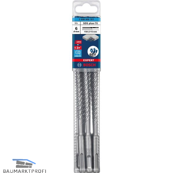 BOSCH HM-Hammerbohrer SDS-Plus-7X Länge 215mm ø 12 mm - 10 Stück