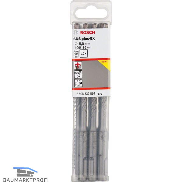 BOSCH HM-Hammerbohrer SDS-Plus-p5X Länge 210 mm Bohrer ø 6,5 mm - 10 Stück