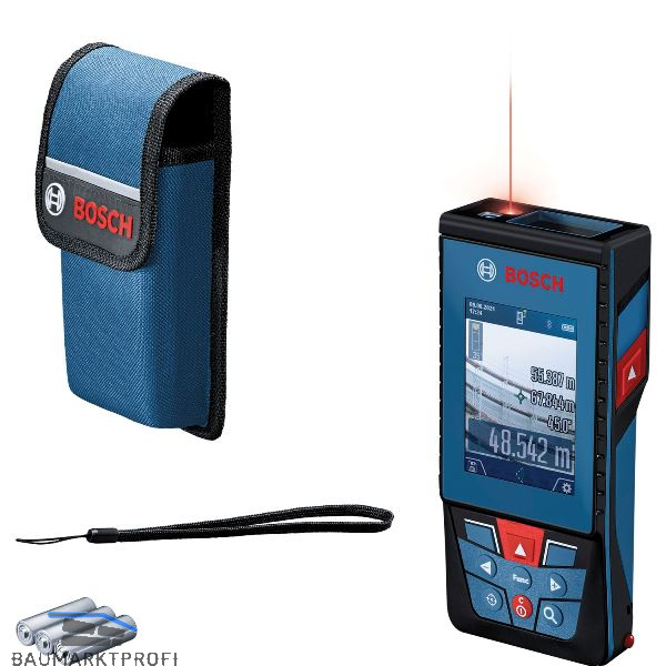 Dieser professionelle Laser-Entfernungsmesser für den Außenbereich verfügt über eine digitale Kamera-Zieloptik mit Zoomfunktion, die Entfernungen bis 100 m präzise misst. Das Kamerabild und die Messwerte sind gut sichtbar auf dem großen, kontrastreichen 2,8-Zoll-IPS-Farbdisplay, das zwischen Hoch- und Querformat wechselt. Für eine bequeme Dokumentation können Messergebnisse per Bluetooth an die Bosch MeasureOn App übertragen werden. Dieser Laser-Entfernungsmesser ist die ideale Lösung für raue Baustellen dank IP54-Schutz gegen Staub und Wasser und kratzfestem Displayglas.