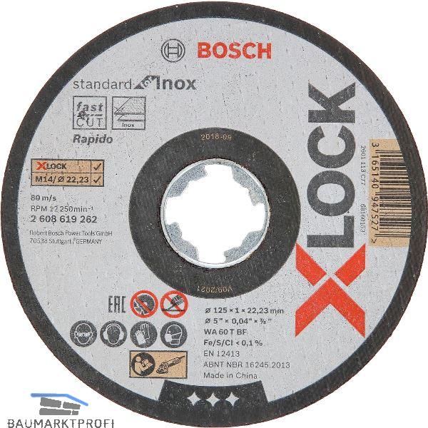 BOSCH Trennscheibe Standard for Inox X-LOCK gerade Form 125x1,0x22,23 mm/10 ST
