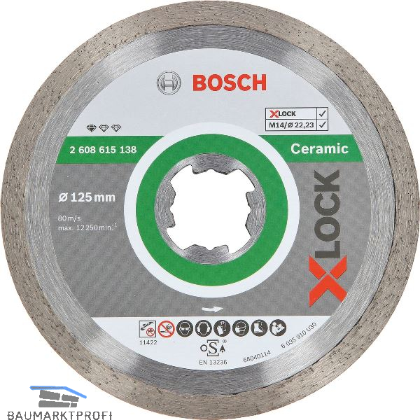 Die X-LOCK Diamanttrennscheibe Standard for Ceramic ermöglicht zuverlässiges Schneiden in Fliesen. Der durchgängige Schneiderand ermöglicht bei Fliesen aller Art präzise Ergebnisse. Dank schlüssellosem X-LOCK System lassen sich die Trennscheiben schnell und bequem wechseln.
