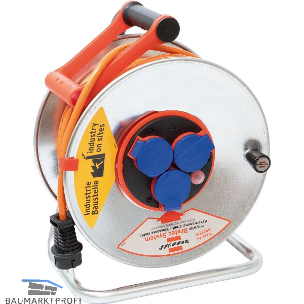 Das Bretec®-Drehkontakt-System ermöglicht das Auf oder Abrollen der Kabeltrommel, ohne dass sich angeschlossene Kabel verdrehen. Extra stabiles Stahlrohrgestell mit neuer, exklusiver Standfestigkeit. Trommelkörper aus Stahlblech, rostgeschützt verzinkt. Mit neuem Cablepilot: ergonomischer und innovativer Tragegriff für perfekte Kabelführung und bequemes Aufhängen. Überhitzungsschutz, Kontroll-Leuchte bei Überhitzung und Überlastung. Schutzkontakt-Stecker sowie 3 Schutzkontakt-Steckdosen mit Klappdeckel. Ausführung: Kabelfarbe orange.
