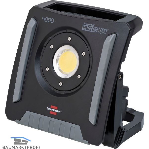 Lieferung inkl. Multi Battery LED Akku Strahler mit abnehmbarer Akku-Schutzhaube, 4 Schnittstellen-Adapter, in Tragetasche.