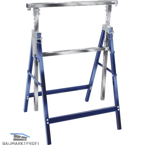 Dieser höhenverstellbare Arbeitsbock bietet eine einfache Anpassung der Höhe durch leicht bedienbare Sicherheits-Rastbolzen. Er besteht aus stabilem Stahl-Vierkantrohr und garantiert eine hohe Standfestigkeit. Die ausklappbaren Rasthaken verhindern das seitliche Abrutschen der Arbeitsplatte (max. 68 cm breit) und erhöhen die Sicherheit. Zusätzlich ist der Bock mit einer schlag- und kratzfesten Kunststoffbeschichtung versehen, die seine Lebensdauer verlängert. Mit einer Belastbarkeit von bis zu 160 kg eignet er sich für anspruchsvolle Aufgaben.