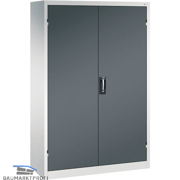 Der Stahl-Flügeltürenschrank der Serie 89 ist ein vielseitiger Magazinschrank mit einer stabilen Stahlkonstruktion und einer Einbrennbeschichtung, die für hohe UV-Beständigkeit sorgt. Ausgestattet mit Kunststoffgleitern, schützt er sowohl den Schrank als auch den Boden. Die Innenausstattung ist flexibel dank höhenverstellbarer Einlegeböden im 15 mm Raster, die eine hohe Traglast von bis zu 110 kg bieten. Die verstärkten Türen haben einen großzügigen Öffnungswinkel von etwa 180 Grad und sind mit einem ergonomischen Ergo-Lock 4.0 Griff für einfache Bedienung versehen. Mit einer Abmessung von 1950 x 1200 x 500 mm bietet der Schrank in RAL 7035 Lichtgrau und RAL 7016 Anthrazitgrau ausreichend Platz für zahlreiche Sichtlagerkästen in verschiedenen Größen.