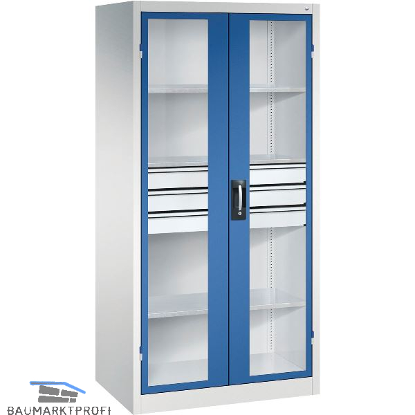 Der Stahl-Flügeltürenschrank der Serie Acurado ist eine robuste Lösung mit einer stabilen Stahlkonstruktion und einer UV-beständigen Einbrennbeschichtung. Er bietet flexible Innenanpassungen dank höhenverstellbarer Einlegeböden im 15-mm-Raster. Die Türen sind verstärkt, mit Acrylglas-Sichtfenstern versehen und bieten einen 180-Grad-Öffnungswinkel für einfachen Zugriff. Ein ergonomischer Ergo-Lock 4.0 Muldengriff mit 3-Riegel-Verschluss und Zylinderschloss sorgt für sichere Bedienung. Die Einlegeböden tragen bis zu 70 kg, was den Schrank vielseitig einsetzbar macht. Der Korpus besteht aus einer stabilen Stahlkonstruktion mit einer hochwertigen Einbrennbeschichtung, die eine hohe UV-Beständigkeit gewährleistet. Schutz: Kunststoffgleiter schützen sowohl den Schrank als auch den Fußboden. Zusätzlich bietet der Schrank durch die Türsichtfenster eine direkte Einsicht in den Schrankinhalt, was zu mehr Ordnung und Übersicht beiträgt und somit Zeit und Kosten spart.