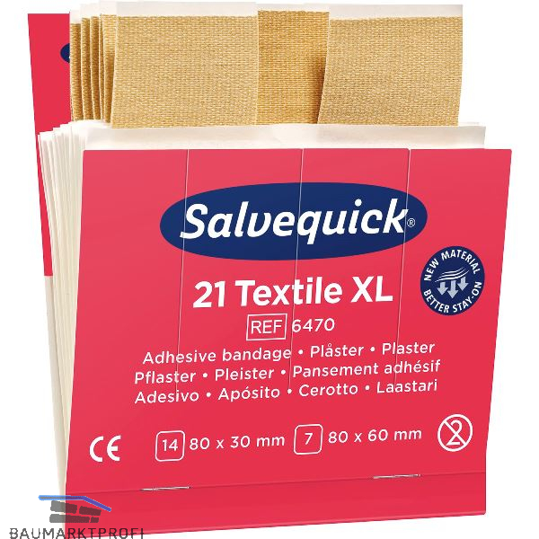 Salvequick Textilpflaster, extra groß, sind robuste, etwas größere, hochwertige Pflaster. Auf Allergien getestet. Leicht aufzukleben, flexibel und praktisch.