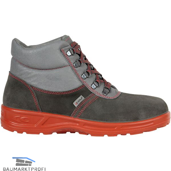 Hochschuh, aus Veloursleder wasserabweisend, Anthrazit - grau, mit Veloursleder Innenfutter, antistatisch, Schockabsorbierung, rutschfest, mit APT durchtrittssicherer Zwischensohle aus Stoff, nicht metallisch - Keine Lochung. Fußbett EVANIT aus einer besonderen Mischung aus EVA und Nitril mit variabler Dicke gewährleistet hohe Körperunterstützung. Thermogeformtes, gelochtes Fußbett mit hochwertiger, atmungsaktiver Beschichtung.