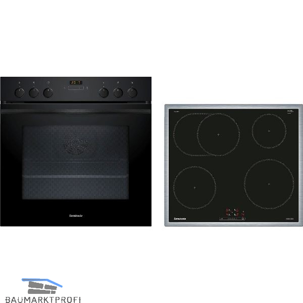 Außenmaß (mm): Herd: 595 (H) x 594 (B) x 548 (T); Kochfeld: 55 (H) x 583 (B) x 513 (T)