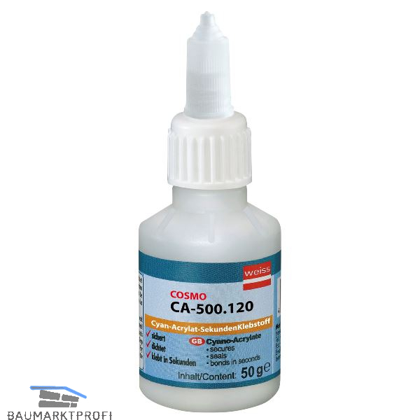 Anwendungsgebiete:z. B. Dichtungstechnik, Abwassertechnik, Kunststoff- und metallverarbeitende Industrie. Der Klebstoff wird insbesondere zur Verklebung von diversen Gummi- und Kunststoffoberflächen eingesetzt. Unter anderem wird er auch im Fensterbau zur Verklebung von EPDM-Dichtungsprofilen verwendet, z. B. an Gehrungen, Stößen miteinander und an PVC-hart und Alu-Profilen. COSMO CA-500 kann auch in Verbindung mit Primer COSMO SP-860.120 zur Verklebung von Silikon- und TPE-Dichtungen benutzt werden.