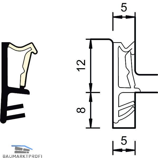 Für Falzhöhe 12 mm, Nutbreite 5 mm, Anschlagluft 5 mm