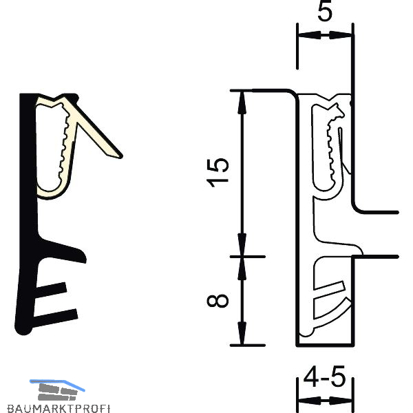 Für Falzhöhe 15 mm, Nutbreite 4 - 5 mm, Anschlagluft 5 mm