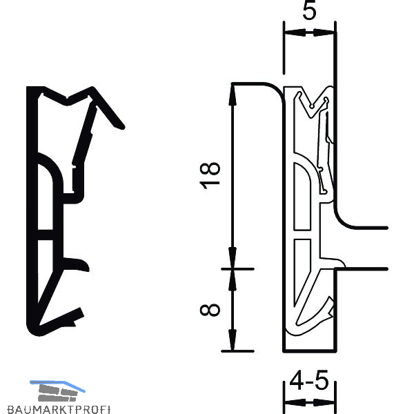 Für Falzhöhe 18 mm, Nutbreite 4 - 5 mm, Anschlagluft 5 mm