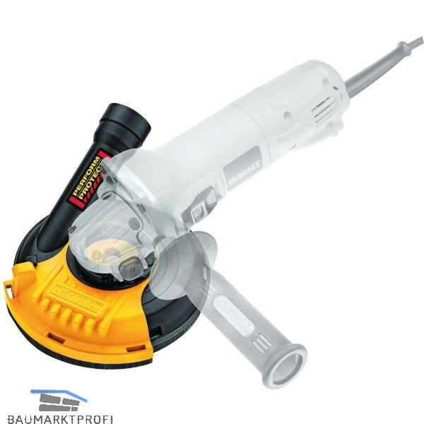 Zum staubarmen Schleifen mineralischer Materialien. Direkte Montage auf alle 115 und 125 mm Dewalt Winkelschleifer mit werkzeugloser Schutzhauben-Schnellverstellung. Randnahes Arbeiten durch schiebbares Segment. AirLock kompatibel für schnellen und einfachen Anschluss an den Staubsauger.