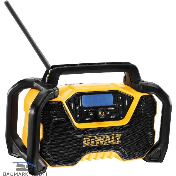 DAB+ und FM Stereo Radio zum kompletten störungs- und rauschfreien Empfang von digitalen und analogen Signalen. Stromversorgung über Netzanschluß (230 Volt) oder über alle XR 10,8 bis 18 Volt- sowie XR Flexvolt-Akkus in allen Ah-Klassen. Extrem robustes Gehäuse mit Überrollbügel, Kabelaufbewahrung sowie flexible Antenne. 3,5 mm AUX-Eingang zum Abspielen und USB-Anschluss zum Aufladen externer Audio-Geräte. Problemlose Verbindung mit Handy oder MP3-Player alternativ auch über Bluetooth. Großdimensionierter Lautstärkenregler und Stationstasten für leichte Bedienbarkeit auch mit Handschuhen.