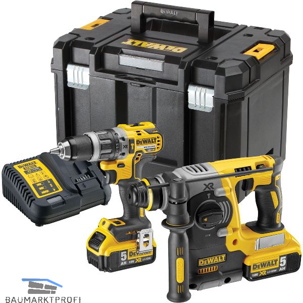 Lieferung inkl. Schlagbohrschrauber DCD796, SDS-plus Kombihammer DCH273, 2 x Akku DCB184 5.0 Ah, Systemschnellladegerät, in T STAK-Box VI.