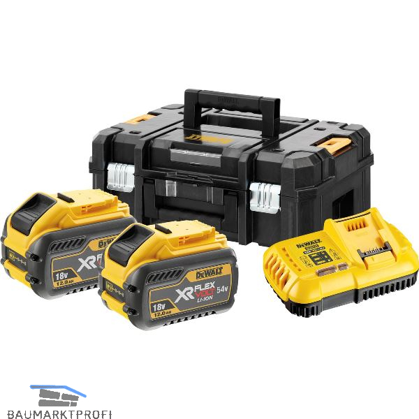 Lieferung inkl. 2 x DCB 548 18/54 Volt / 12,0 Ah Li-Ion Flexvolt Schiebe-Akkus und DCB118 System-Schnellladegerät, Akku-Trage DCK998, T-STAK-Box II.