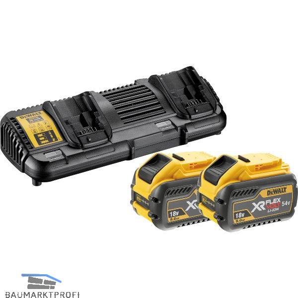 Lieferung inkl. 2 x DCB 547 18/54 Volt / 9,0 Ah Li-Ion Flexvolt Schiebe-Akkus und DCB 132 Doppel-Schnellladegerät.