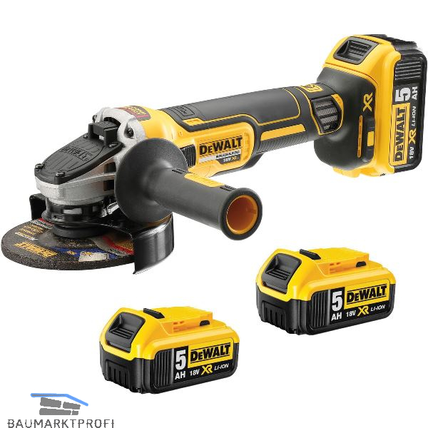 Lieferung inkl. 3 Akkus XR Li-Ion mit LED-Kapazitätsanzeige 5,0 Ah, System-Schnellladegerät, Vibrationsdämpfender Zusatzhandgriff, Schnellspannmutter, Schutzhaube, in T-STAK Box ll.