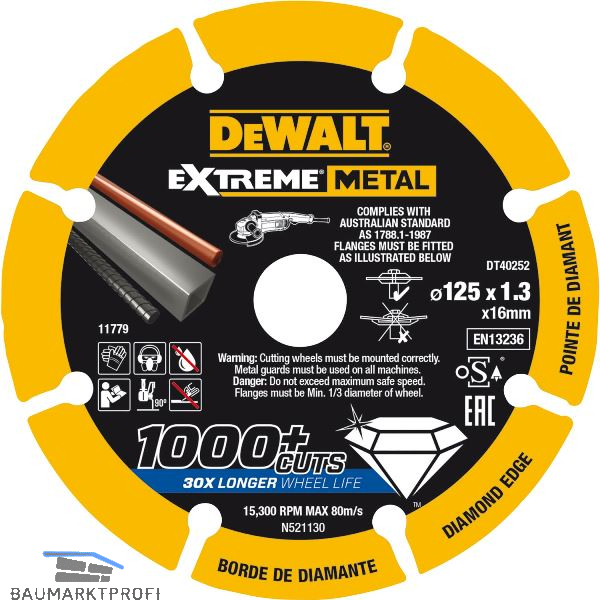 Speziell für ein Höchstmaß an Leistung und Haltbarkeit entwickelt. Diese Scheiben können mit kabelgebundenen und kabellosen Winkelschleifern sowie Kapp- und Benzinsägen bei einer Vielzahl von Metallen eingesetzt werden.1000+ Schnitte pro Blatt. 30 x längere Standzeit im Vergleich zu gebundenen Trennscheiben, robuste Diamantkantensegmente verhindern Verschleiß, die Schnitttiefe des Blattes bleibt erhalten und sorgt für eine gleichbleibende Schnitttiefe. Der massive Stahlkörper verringert erheblich das Bruchrisiko. Im Vergleich zu gebundenen Schleifmitteln wird hier eine weitaus geringere Staub- und Geruchsentwicklung garantiert.