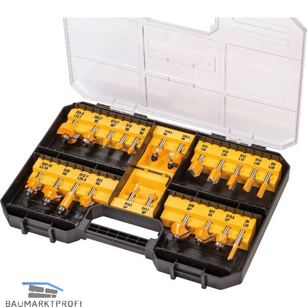 HW-Fräser-Set in Aufbewahrungsbox mit Klarsichtdeckel.