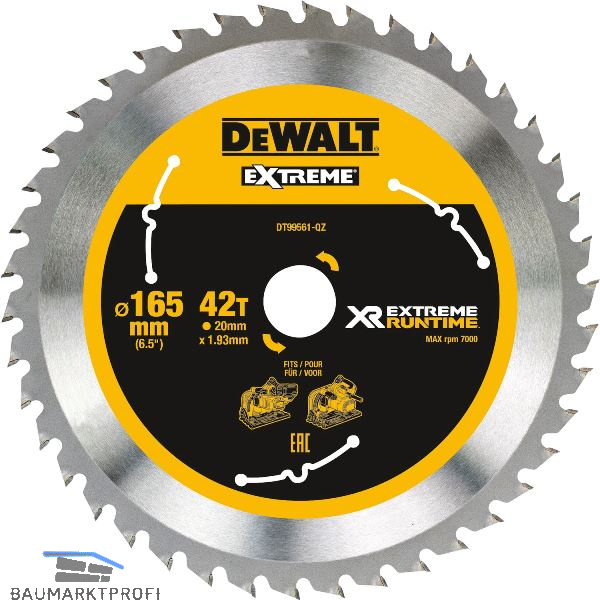 DEWALT Kreissägeblatt XR Extrem Runtime HM ø 165 x 1,76 x 20mm Zähne 42 (WZ/FZ)