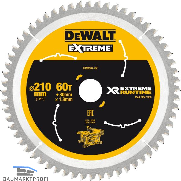 DEWALT Kreissägeblatt XR Extrem Runtime HM ø 210 x 1,8 x 30mm Zähne 60 (WZ/FZ)