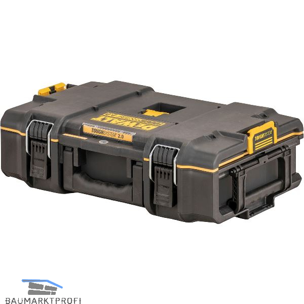 Die neue Generation ToughSystem 2.0 mit IP65 Schutz (staubdicht / spritzwassergeschützt). Kompatibel mit ToughSystem 1.0. Boxen stapelbar und miteinander verriegelbar mit noch robusteren Riegeln und Verschlüssen. Noch breitere und stärkere Bügelgriffe aus Bi-Material und 38% größeres Innenvolumen. Möglichkeit, den DEWALT Tracker zu installieren und die Box per DEWALT Tool Connect App zu orten. 2 große herausnehmbare Organizer Innenfächer mit Teilern. Fach für Namensschild.