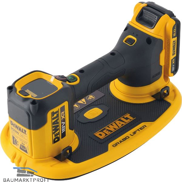 Kabelloser, leistungsstarker 18V XR Vakuumheber für ein rückenschonendes und sicheres Heben und Platzieren einer Vielzahl von Materialien. Bis zu 120kg Hebekraft – sowohl in senkrechten als auch in waagerechten Ebenen. Digitales Manometer – Dichtungsdruck wird überwacht und automatisch wiederhergestellt.