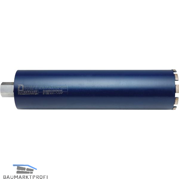 Standard 1 1/4" G-Aufnahme. Lasergeschweißte Segmente, 11 mm hohe Segmente für eine lange Standzeit. Geeignet für den Einsatz in Stahlbeton, Mauerwerk, Natur- und Kunststein. Zum Nassbohren.