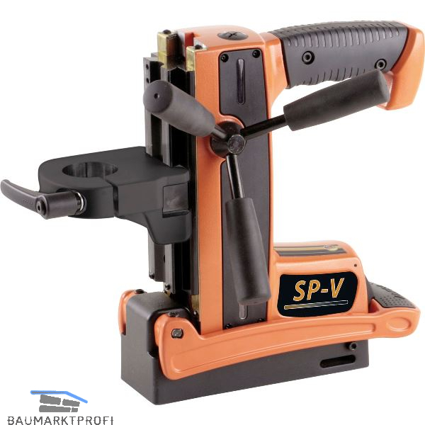 Bei der SP-V ermöglichen die variablen Halterungen den Einsatz verschiedener Bohrmaschinen. Als Standard ist der Bohrständer mit einem sogenannten Eurobund Ø 43 mm ausgestattet. Selbst Akku-Bohrmaschinen können als kabellose Kombination mit dem Permanentmagnet-Ständer verwendet werden für einen nahezu unbegrenzten Einsatzbereich - schon ab 2 mm Materialstärke!