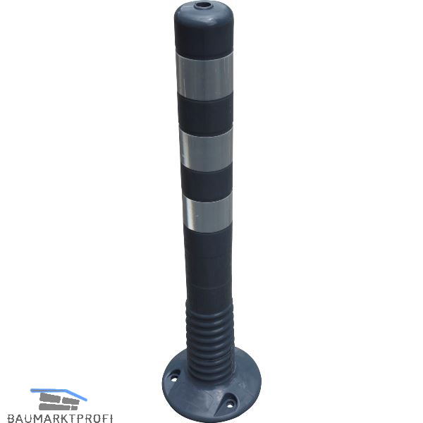 Flexibler überfahrbarer Kunststoff-Absperrpfosten, kann gefahrlos an- bzw. überfahren werden. Schäden an Fahrzeugen werden erheblich minimiert. Mit retroreflektierenden Streifen. Kippbar um 360º-selbstaufrichtend.