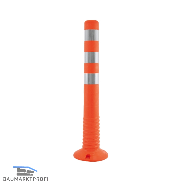 Flexibler überfahrbarer Kunststoff-Absperrpfosten, kann gefahrlos an- bzw. überfahren werden. Schäden an Fahrzeugen werden erheblich minimiert. Mit retroreflektierenden Streifen. Kippbar um 360º-selbstaufrichtend.